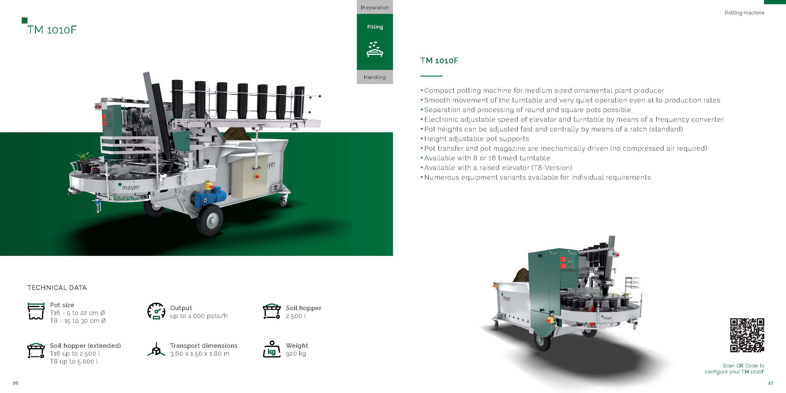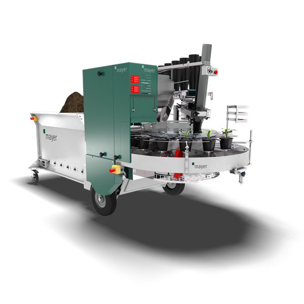 TM 1010 F上盆機(jī)的生產(chǎn)效率提高的同時(shí),操作和控制也非常方便。例如,轉(zhuǎn)盤中央快速調(diào)節(jié)的設(shè)計(jì)使換盆架更換不同直徑花盆的調(diào)整時(shí)間大大縮減。轉(zhuǎn)盤和鏈?zhǔn)缴禉C(jī)的電子頻率控制確保功率調(diào)節(jié)的精確性,并且通過(guò)工作區(qū)域的控制面板控制,操作簡(jiǎn)單。也可以附加用于控制基質(zhì)輸送、鉆孔電機(jī)和傳送帶的變頻器,需額外費(fèi)用。(圖片包含額外的設(shè)備)。