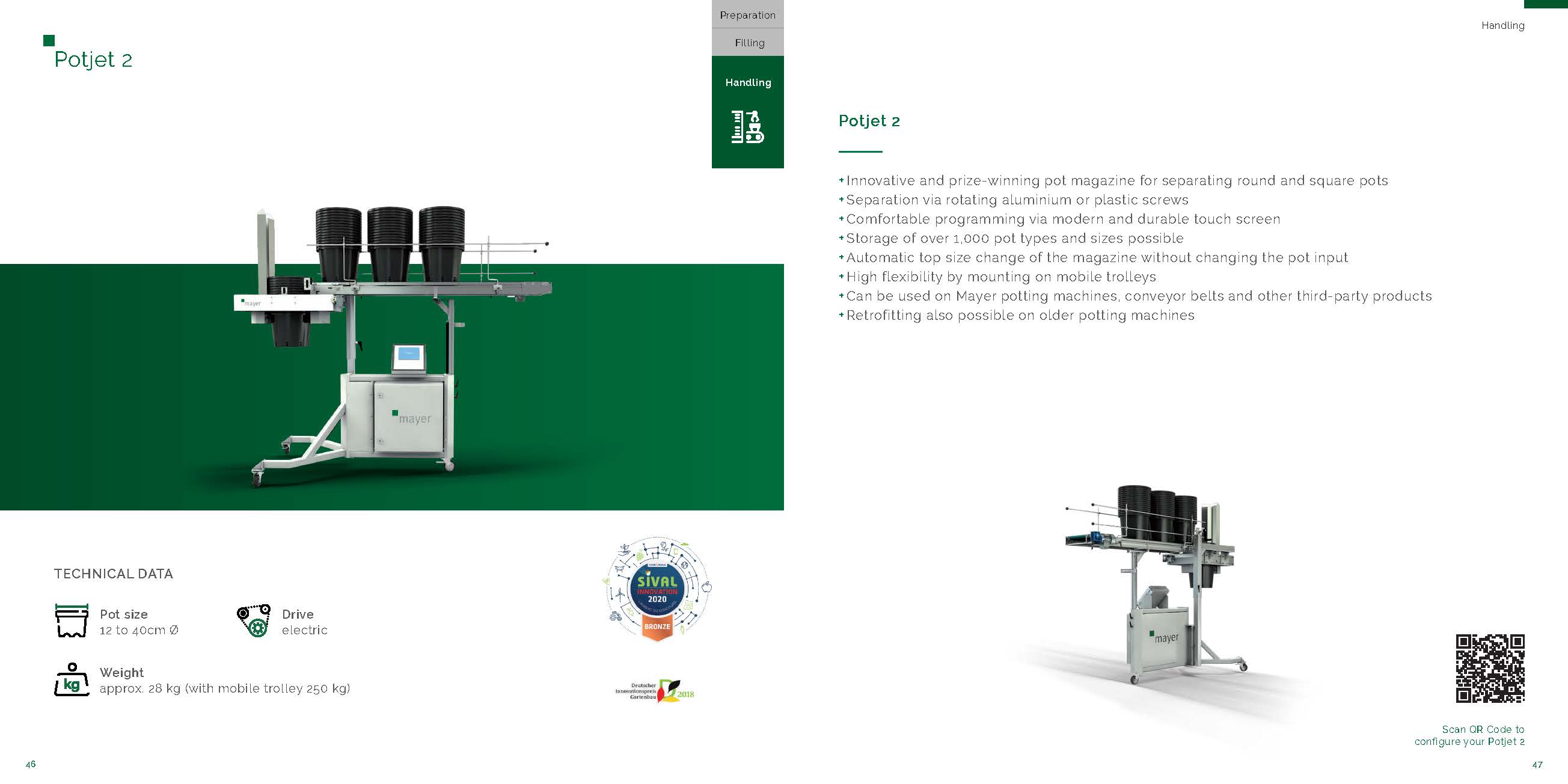 創(chuàng)新的螺旋式上盆單元Potjet 2在上盆方式上樹立了新的標(biāo)準(zhǔn)。憑借由聯(lián)邦糧食和農(nóng)業(yè)部(BMEL)頒發(fā)的“ 2018年德國園藝創(chuàng)新獎(jiǎng)”以及“ 2020年創(chuàng)新銅獎(jiǎng)”,我們的花盆設(shè)備以其特殊的質(zhì)量,實(shí)用性,對用戶的益處及其創(chuàng)新性而獲得認(rèn)可。